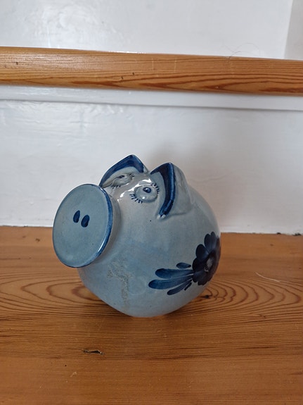 Aksini blå blomst sparegris