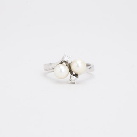 Perle-og diamantring af guld