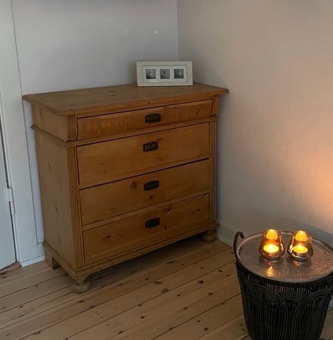 Rummelig kommode.
