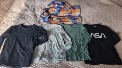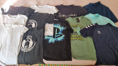 Som voksne med børn ved, er lyden af vaskemaskinen en fast del af hverdagen. T-shirts, skjorter og toppe skal, ligesom mange andre beklædningsgenstande, opbevares i store mængder i garderoben, så vaskemaskinen ikke skal køre konstant. Når du køber brugte skjorter og toppe, er den samlede pris billigere. Børnetrøjer er ofte lavet af bomuld. En brugt bomulds-t-shirt kan være særligt behagelig for et barn med sart hud, da den ofte føles blødere.