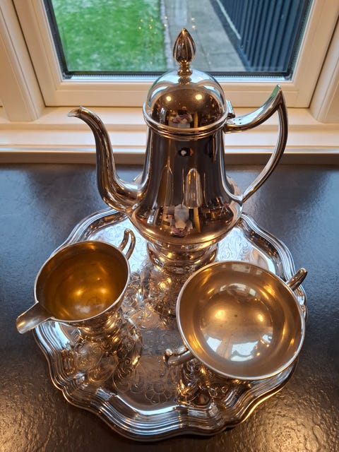 Kaffestel i sølvplet