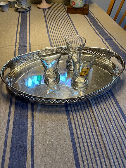 Serveringsbakke i pletsølv