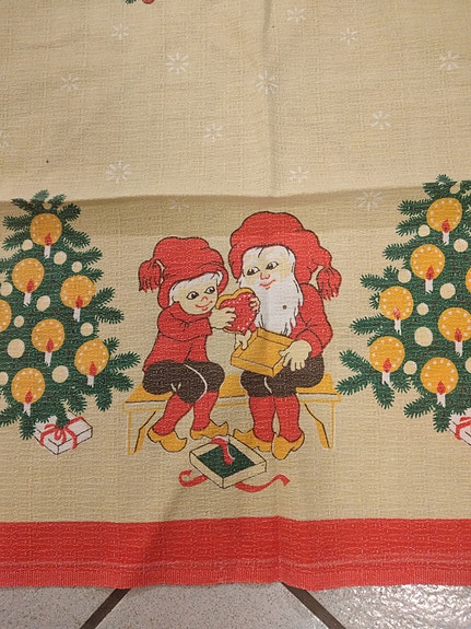 Lang juledug med nisser.