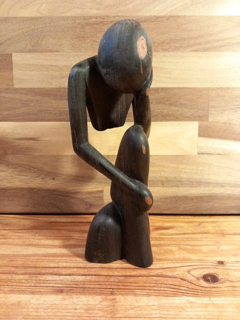 Træfigur af tænkende mand
