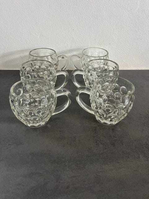 6 små ølkrus i glas