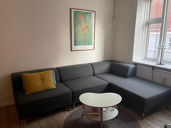 Lækker grå sofa med puf