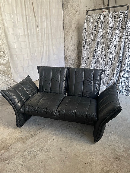 Italiensk sort lædersofa fra 80’erne