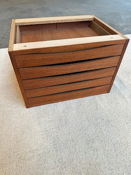 teaktræ skrivebord med 7 skuffer