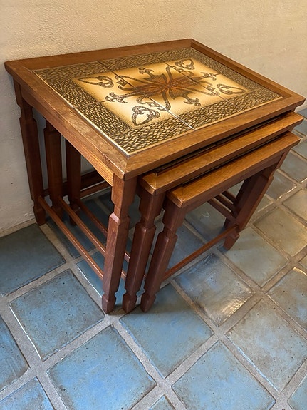 Kakkelbord, sofabord, teaktræ