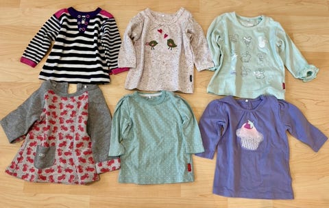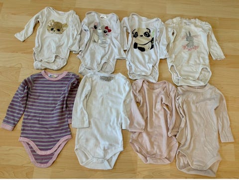 Du bør have nok børnetøj til, at du ikke behøver at starte vaskemaskinen konstant. Overvej om du kan købe noget brugt: For eksempel bliver babybodyer let snavsede, og det er godt at have rigeligt af dem i en familie med babyer. Smukke børnetrøjer og kjoler bliver ofte for små efter kun enkelte brug, og det er godt at sælge dem og dermed forlænge tøjets levetid. Hvad angår overtøj, kan vinter- og mellemsæsonens overtræksdragter eksempelvis købes brugt, da særligt overtræksdragter fra kvalitetsmærker tåler flere børns kravlen og tumlen i sne og sjap.