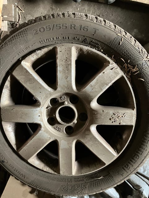 Alufælge med vinterdæk.