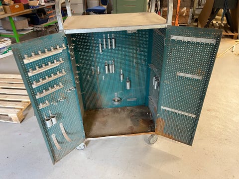 Blå metal reolhylder med rumopdeling