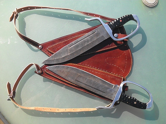 2 KÆMPEKNIVE MED LÆDERSKEDE