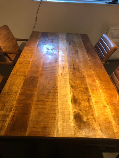 Flot træbord med læderstole