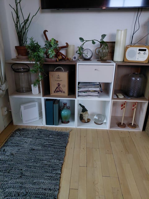 Praktisk platform med reol