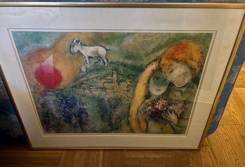 Akryl maleri i ramme med glas 80×80