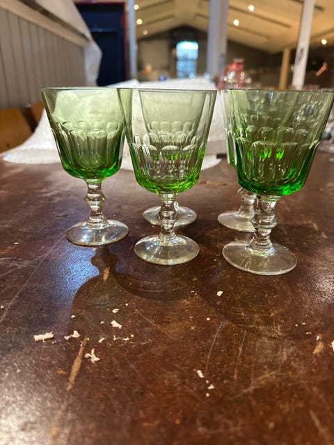 Grønne glas med stillet fod 3 stk
