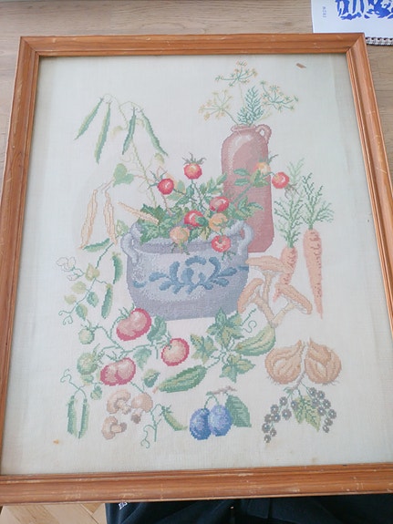 Broderet billede i ramme