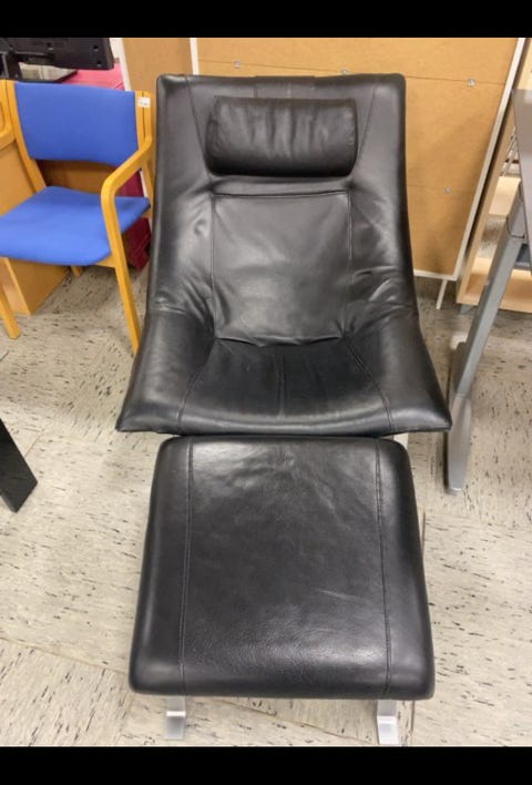 Lænestol og skammel.sort