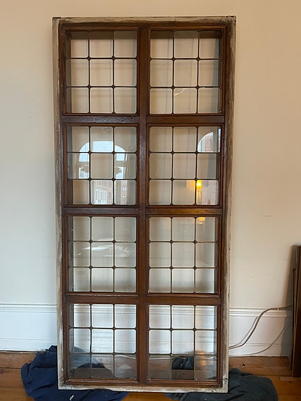Antikt småsprosset vinduesramme i eg