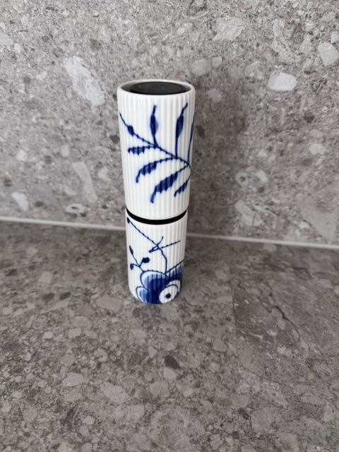 Musselmalet løvelysestage riflet