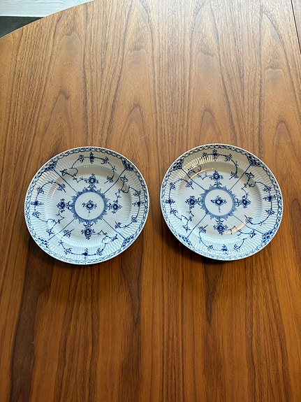 2 stk. Royal Copenhagen, Musselmalet, halvblonde, flad tallerken 22,5 cm (572)