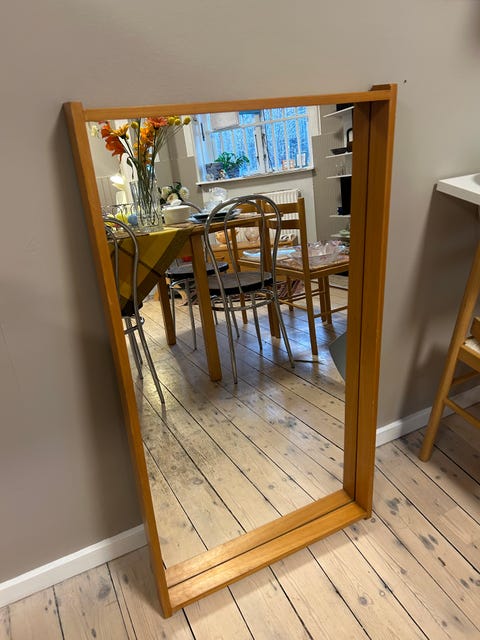 Stort spejl i fyrretræsramme