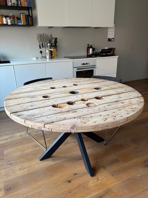 Rundt kabeltromle spisebord Ø140