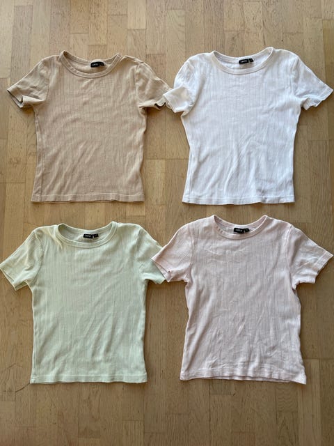 Som voksne med børn ved, er lyden af vaskemaskinen en fast del af hverdagen. T-shirts, skjorter og toppe skal, ligesom mange andre beklædningsgenstande, opbevares i store mængder i garderoben, så vaskemaskinen ikke skal køre konstant. Når du køber brugte skjorter og toppe, er den samlede pris billigere. Børnetrøjer er ofte lavet af bomuld. En brugt bomulds-t-shirt kan være særligt behagelig for et barn med sart hud, da den ofte føles blødere.
