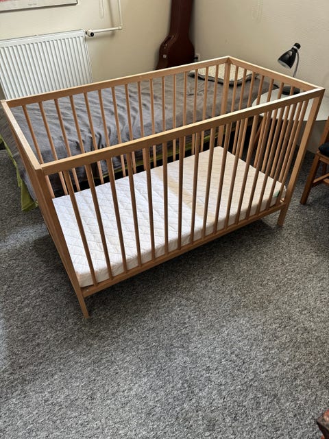 Ofte er barnets første seng en vugge, mens der først senere bliver købt en tremmeseng eller babyseng. En brugt tremmeseng kan være tilstrækkelig for en baby og et lille barn. Når du læser annonce(r), skal du være opmærksom på, om tremmesengen har en justerbar bund. En udtræksseng til børn er et godt køb, når barnet bliver større, for den kan bruges i flere år. Mange børn bevæger sig rundt i søvne, så det er godt, at sengen har kanter.