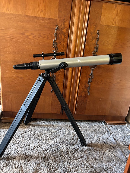 Teleskop på trefod stativ
