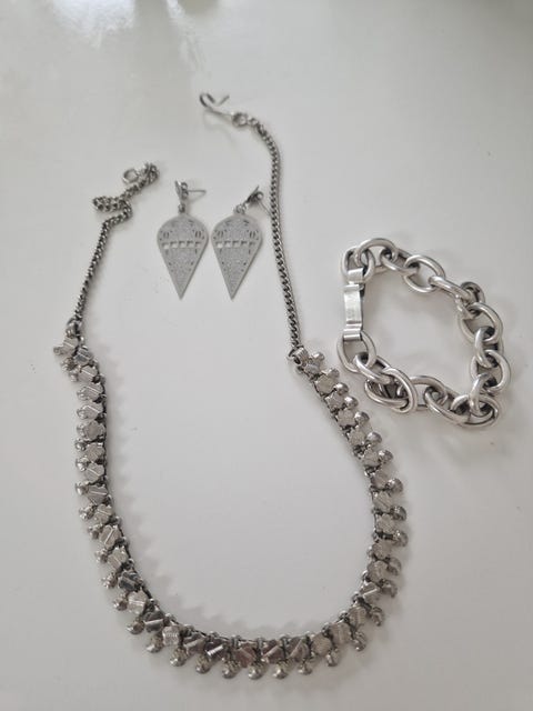 Et smykkesæt inkluderer ofte en halskæde og øreringe, og muligvis også et armbånd eller en ring. Delene i et smykkesæt passer naturligvis sammen og giver dit outfit et komplet look. Tjek DBA's 2.078 annonce(r) og se, om du kan finde det perfekte smykkesæt.