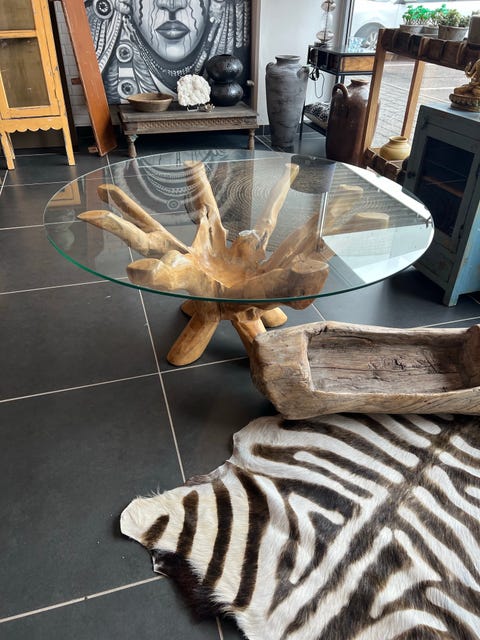 Teak rod med glasplade.