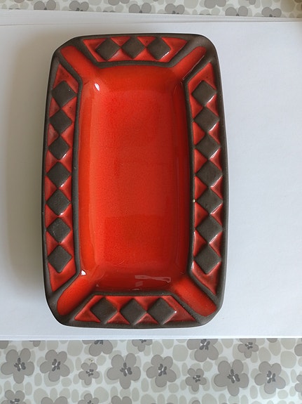 Rød glasskål