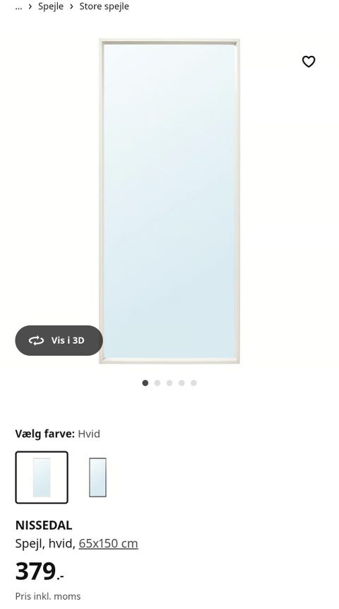 Et spejl er en nem måde at forny indretningen og atmosfæren i et rum på. Især et stort vægspejl kan få rummet til at føles mere rummeligt. Spejlets stil kan komplementere rummets indretning eller tilføje et personligt præg. Et spejl i fuld længde er praktisk, og kan være både et stående spejl eller et væghængt spejl. På DBA kan du finde både hverdagsspejle og unikke, gamle spejle, som ikke længere fås i butikkerne.