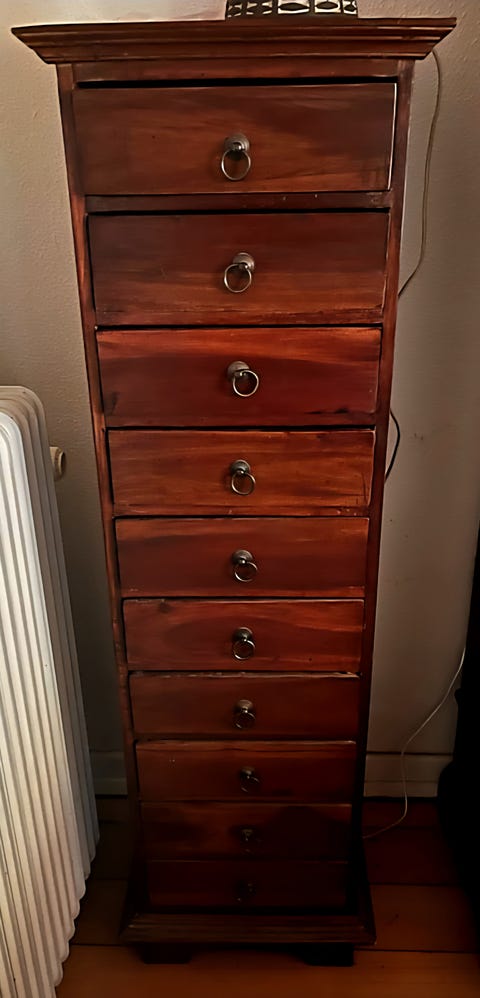 Rød skuffe ting