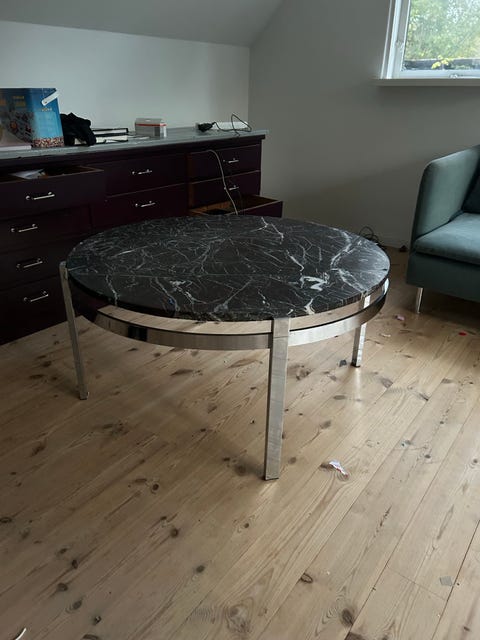 Chrom og lilla/rødbrun marmorbord