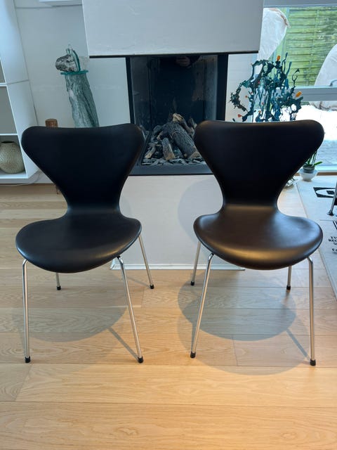 Arne Jacobsen 3207 Syver Armstole – Nypolstret i Cognac Læder & Sort Stel 7er