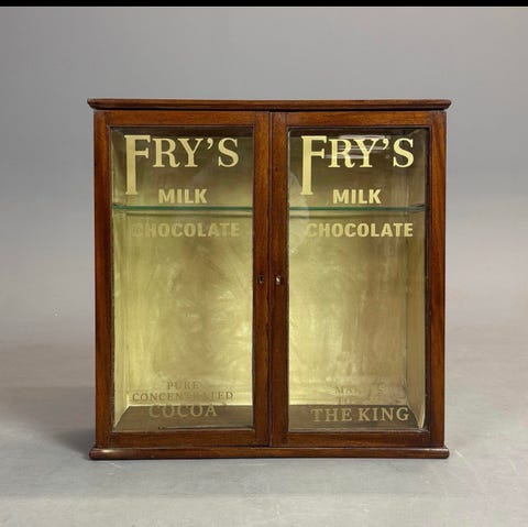 Fry’s chokolade vitrineskab træ glas