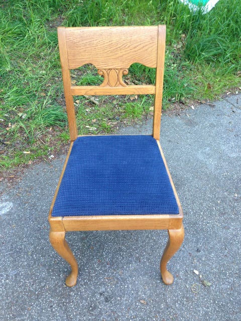 Træstol med blåt sæde