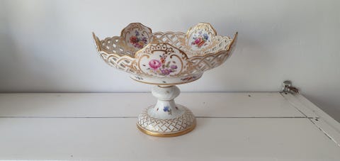 Royal Copenhagen Blå blomst lågkrukke opsats. Låg krukke i porcelæn 10/1754