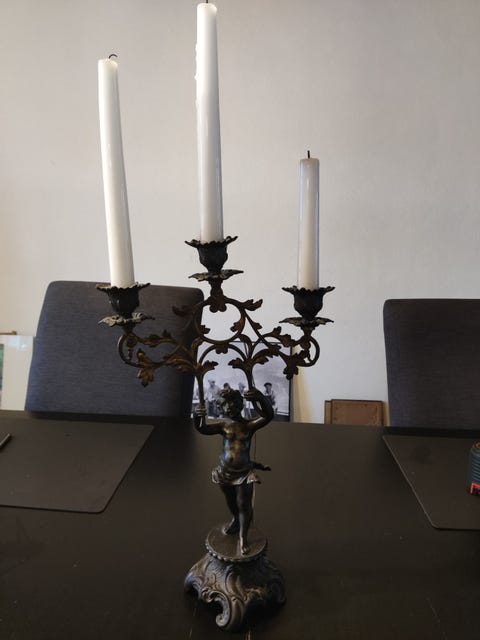 Antik lysestage i bronze