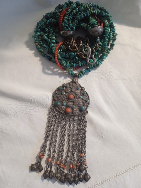 Turkis - Sølv, Bronze - Halskæde