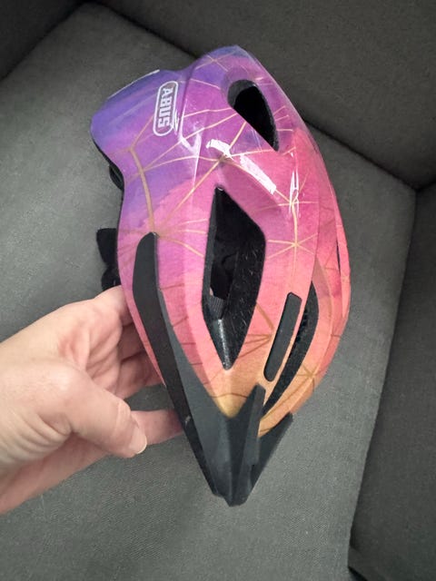 cykelhjelm blå og pink