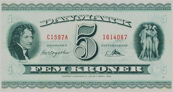 Danmark. 5 kr. seddel 1960
