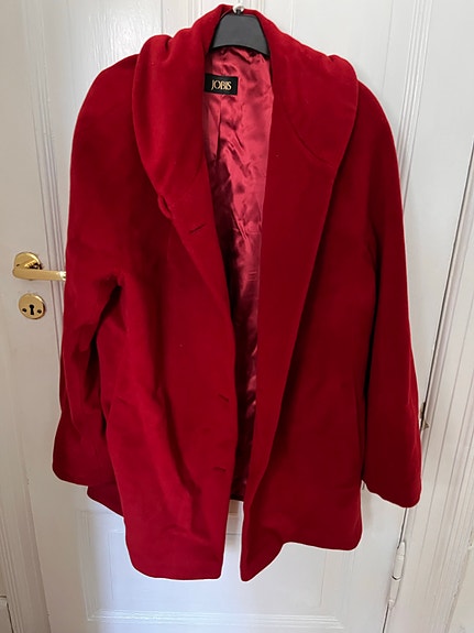 Rød uldfrakke