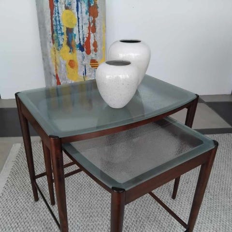 Teak/nød indskudsborde