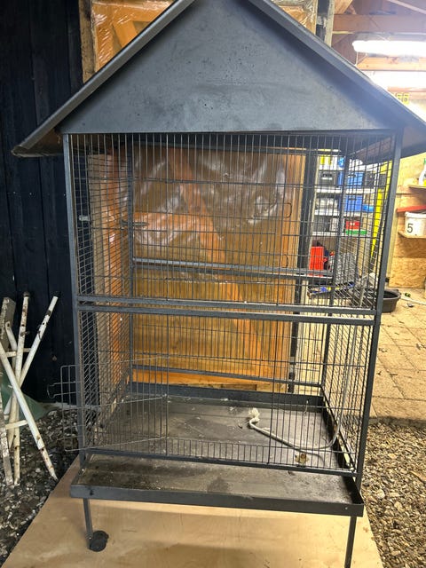 Fuglbur i metal med tag