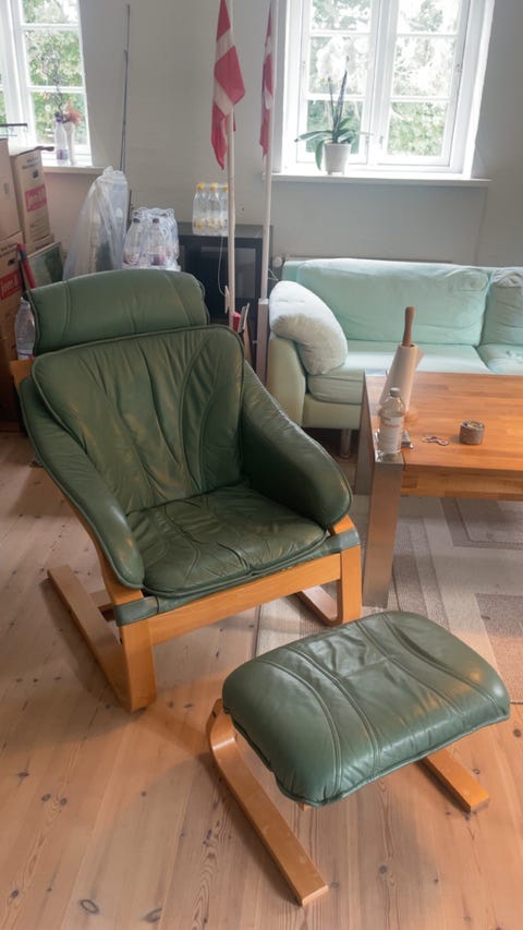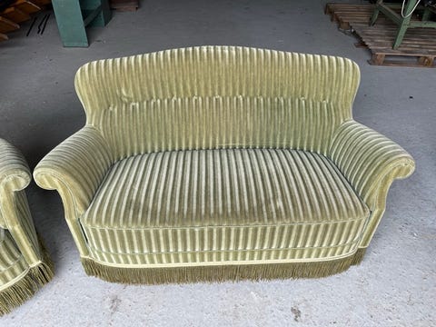 2 FINE RETRO-LÆNESTOLE I GRØNT SKIND