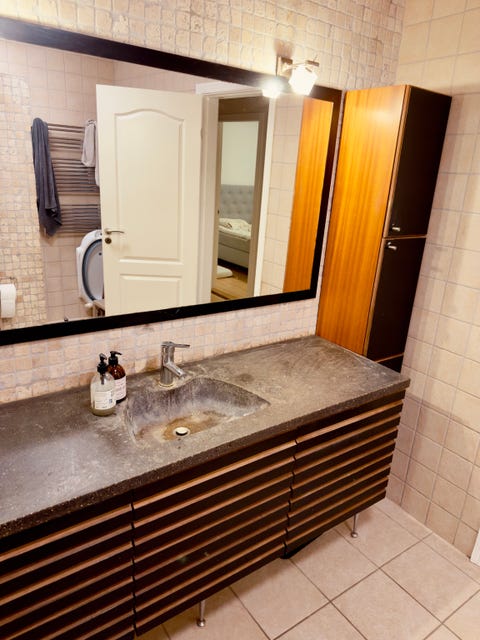 Bordplade, møblement, spejl, skabe